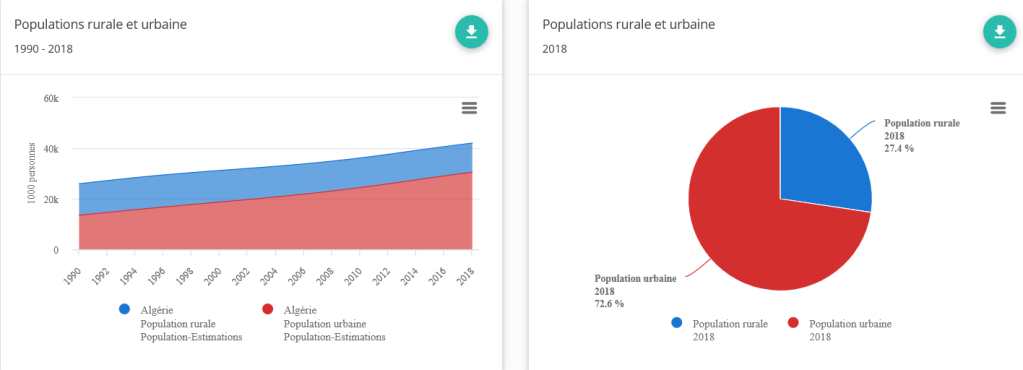 Depuis l’indépendance l’Algérie a plus que qua-triplé sa population, passant de 11 à 44 millions en 2021. Une modification profonde de la répartition entre les types de population a marqué cette croissance.