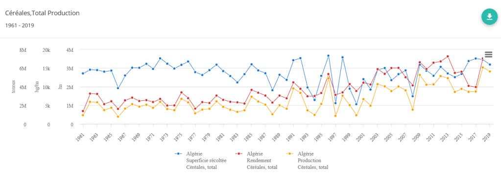 Production, rendement et consommation céréalières.